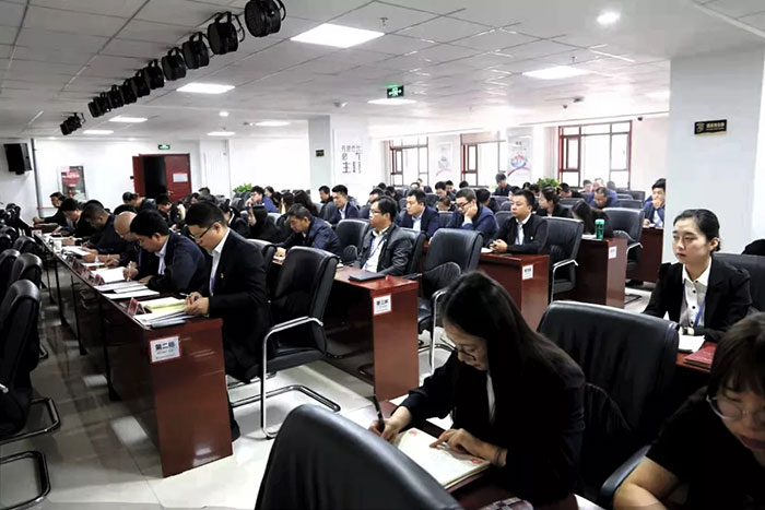 蘭州新區(qū)主題教育第五巡回指導(dǎo)組到會指導(dǎo),公司黨委班子成員、全體黨員及職工代表共計百余人參加會議。