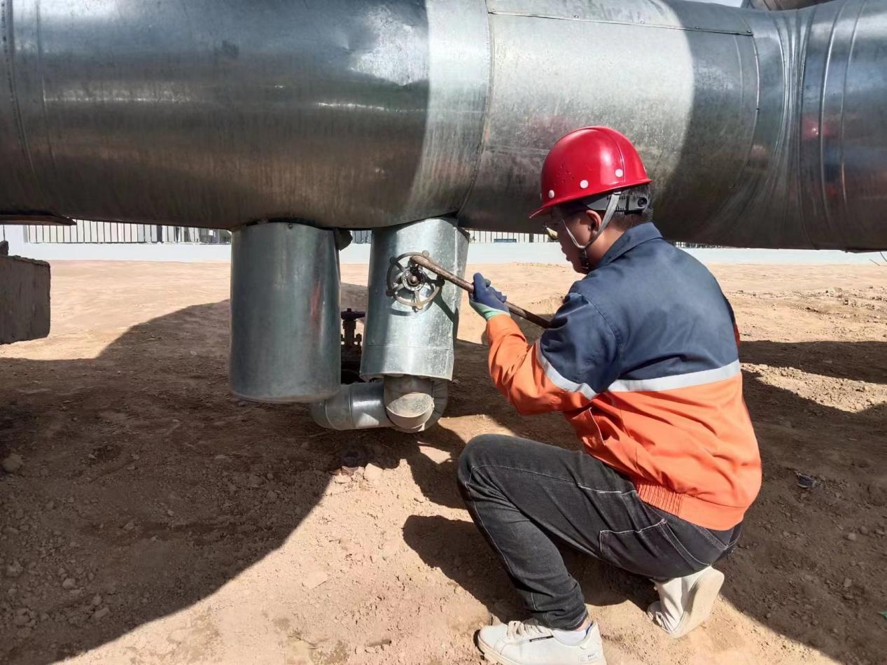 未雨綢繆,全力保障供水供汽生產(chǎn)。化工熱電公司結(jié)合以往抗寒保供經(jīng)驗(yàn),對(duì)化工園區(qū)供水設(shè)備和管線、供汽設(shè)備及管網(wǎng)等設(shè)施進(jìn)行安全排查。貫通工業(yè)水管線,使園區(qū)各經(jīng)緯路工業(yè)水形成環(huán)網(wǎng)運(yùn)行,確保工業(yè)水管線全線流通無死角。檢查供水沿線閥門井室井蓋處于關(guān)閉狀態(tài),防止因寒冷天氣對(duì)供水管線造成影響。排查消防水供水管線,關(guān)閉閥門井室。1#、2#、3#消防站通入暖氣,確保消防設(shè)施及消防水罐的安全穩(wěn)定運(yùn)行。關(guān)閉所有生活水至市政消火栓供水隔斷閥,井口做保溫措施,防止消火栓凍裂。排查供汽管線各個(gè)死區(qū)位置,加強(qiáng)巡檢,有水就排,使死區(qū)無積水,保證蒸汽管網(wǎng)安全穩(wěn)定運(yùn)行。