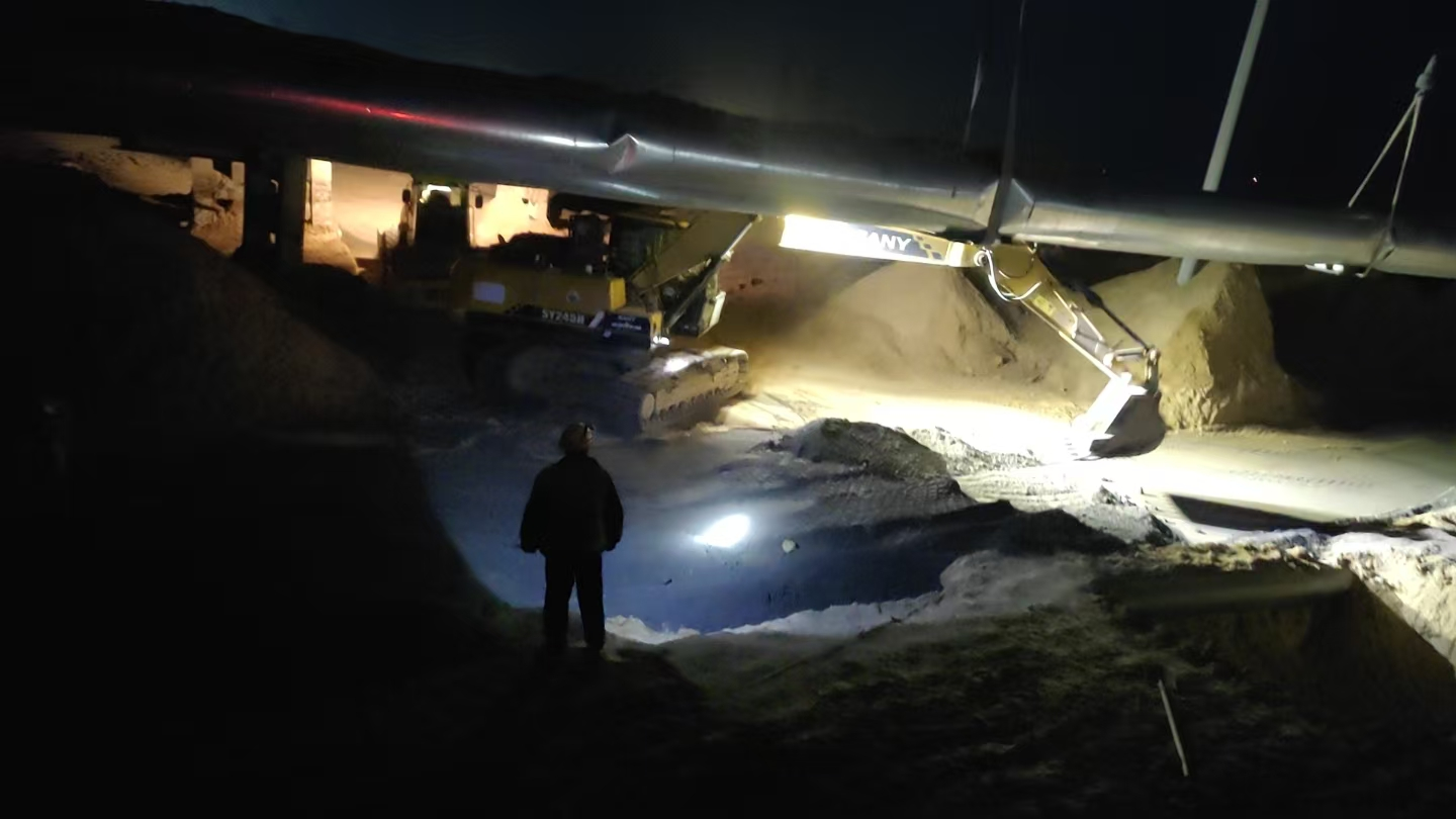 與此同時,化工熱電公司迅速聯(lián)動久安檢修公司開展支援協(xié)作,第一時間調(diào)配25噸吊機(jī)及專業(yè)施工團(tuán)隊抵達(dá)現(xiàn)場,對沉降嚴(yán)重的管道段實施調(diào)運卸壓,并為兩側(cè)沉降較輕區(qū)域加裝墊鐵進(jìn)行臨時固定。然而,傍晚時分現(xiàn)場突發(fā)緊急情況,墊鐵基礎(chǔ)沉降加劇,25噸吊機(jī)負(fù)荷即將觸及安全閾值。面對險情,搶修小組連夜協(xié)調(diào)70噸重型吊機(jī)進(jìn)場替換,科學(xué)加固管道,成功化解突發(fā)風(fēng)險,全程保障園區(qū)供汽平穩(wěn)有序,未出現(xiàn)任何中斷情況。