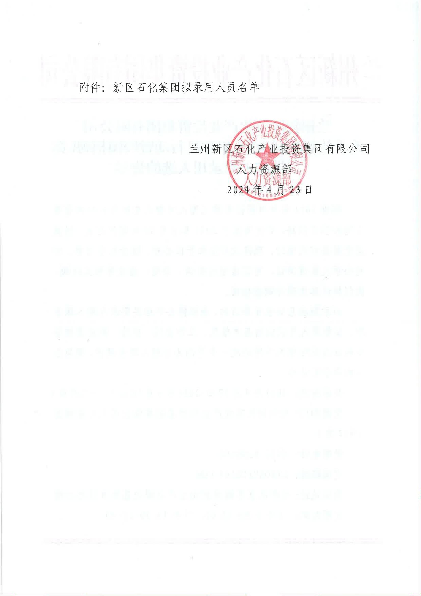蘭州新區(qū)石化產(chǎn)業(yè)投資集團(tuán)有限公司 關(guān)于蘭州新區(qū)2024年春風(fēng)行動(dòng)暨校園招聘(第二批次)擬錄用人選的公示