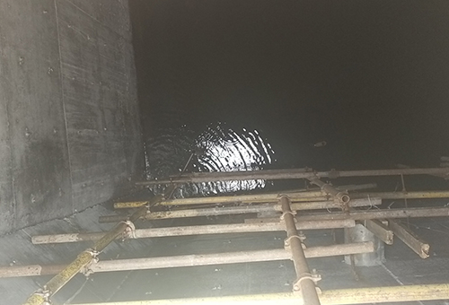 閉水試驗是池體施工質(zhì)量總體檢驗的必要環(huán)節(jié)之一。為加快推進項目建設(shè)進度,石投集團博石環(huán)保有限公司與施工單位中鐵二十一局積極溝通,明確施工方案,確定實驗日期,要求中鐵二十一局嚴格按照施工計劃執(zhí)行,并指定專人負責,從管道施工、池底平整、腳手架拆除、廢料清除、預(yù)埋管口及進出口的臨時封堵、輸水管道的敷設(shè)等環(huán)節(jié)層層把控,督促中鐵二十一局做好閉水試驗前的各項準備工作。在閉水實驗過程中,博石環(huán)保公司要求中鐵二十一局隨時對池體進行外觀檢查,觀測底板、池壁是否漏水,發(fā)現(xiàn)滲漏點要做好標記并及時處理解決。經(jīng)過連續(xù)三天的持續(xù)觀察和記錄后,若無滲漏才可逐步排水。