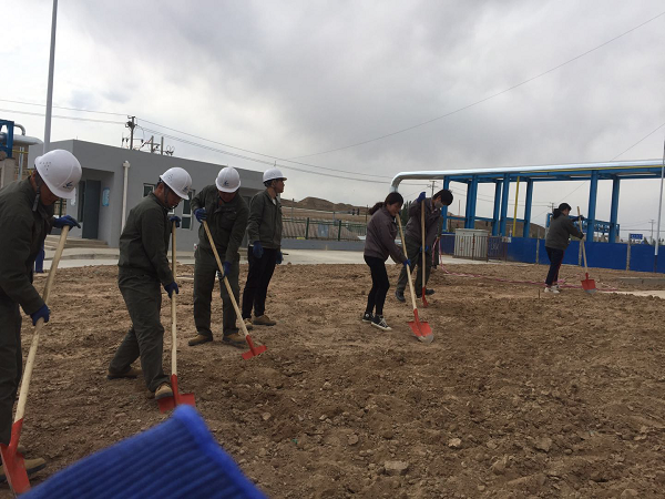 為做好該工作,熱源廠提前謀劃,搶抓時(shí)節(jié),協(xié)調(diào)各方資源,挖溝打埂、拉車換土、清除雜物、栽種苗木、種花種草,全面鋪開廠區(qū)綠化美化工作,到處呈現(xiàn)一片熱火朝天的繁忙景象?;顒又?,熱源廠全體人員團(tuán)結(jié)一致,相互配合,鏟除雜草。一起翻土整地、起壟、撒花籽、培土,在辦公樓前后、脫鹽水廠房及煤棚等多處種上了三葉草、白波、金雞、紫波等花種,用自己的實(shí)際行動,為營造優(yōu)美的生活環(huán)境貢獻(xiàn)一份力量。