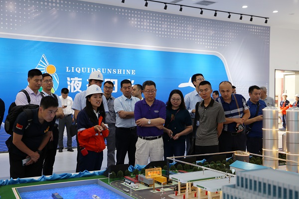 2020年7月19-21日,中科院大連化學(xué)物理研究所李燦院士帶領(lǐng)英國(guó)BP公司、榆林碳?xì)溲芯吭汗煞萦邢薰镜?3家單位30多名領(lǐng)導(dǎo)專家在新區(qū)科技發(fā)展局領(lǐng)導(dǎo)的陪同下,到蘭州新區(qū)綠色化工園區(qū)考察蘭州新區(qū)石投集團(tuán)建設(shè)、試車的液態(tài)太陽(yáng)燃料合成項(xiàng)目——二氧化碳加氫合成甲醇中試和示范工程項(xiàng)目。