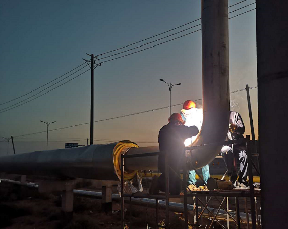 熱力管網(wǎng)一期項目位于蘭州新區(qū)綠色化工園區(qū)南區(qū)塊,由蘭州新區(qū)化學(xué)工程有限公司承建,主要負責為園區(qū)企業(yè)提供生產(chǎn)所需的蒸汽及采暖所需的熱水。該項目主管網(wǎng)已于2019年11月全線貫通,并投入使用。后期因新入園企業(yè)的增加,導(dǎo)致原管線預(yù)留口及企業(yè)門頭桁架發(fā)生變更需改遷。為了不影響園區(qū)企業(yè)生產(chǎn)運營,石投集團經(jīng)過多方協(xié)調(diào),商定于9月29日早上七點停汽。此次熱力管網(wǎng)管道改遷工作任務(wù)緊,難度大,工程公司迎難而上,通過前期對圖紙的精研,科學(xué)組織,精準施策,經(jīng)過15個小時連續(xù)奮戰(zhàn),最終完成6座企業(yè)門頭桁架蒸汽管道的改遷、6處新增蒸汽預(yù)留接口的安裝及2處DN400旋轉(zhuǎn)補償器位置的變更。