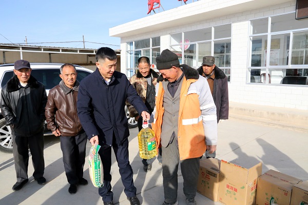 春節(jié)臨近,為使尹家莊村結(jié)對(duì)幫扶戶過(guò)一個(gè)安樂(lè)、祥和的節(jié)日,切實(shí)把溫暖送到群眾心中,2月7日上午,石投集團(tuán)組織開(kāi)展了春節(jié)幫扶慰問(wèn)送溫暖活動(dòng)。