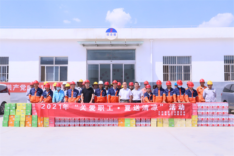 大暑將至,為進(jìn)一步做好職工夏季高溫期間防暑降溫工作,關(guān)愛(ài)廣大一線職工的健康安全,把對(duì)廣大職工的關(guān)心關(guān)愛(ài)落到實(shí)處,7月21日,新區(qū)工會(huì)聯(lián)合石投集團(tuán)工會(huì)開(kāi)展“關(guān)愛(ài)職工·夏送清涼”活動(dòng),深入蘭州新區(qū)化工園區(qū)項(xiàng)目建設(shè)和生產(chǎn)一線開(kāi)展慰問(wèn)活動(dòng)。新區(qū)黨群工作部副部長(zhǎng)秦利軍、石投集團(tuán)工會(huì)主席劉東斌一行深入項(xiàng)目現(xiàn)場(chǎng),為一線職工送去防暑物資和關(guān)懷。
