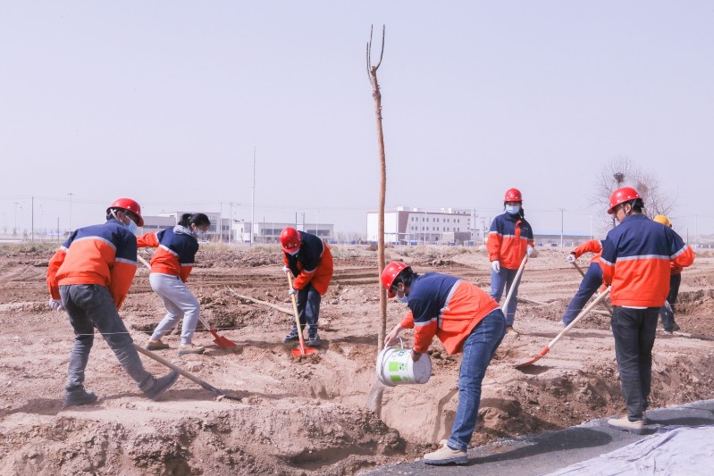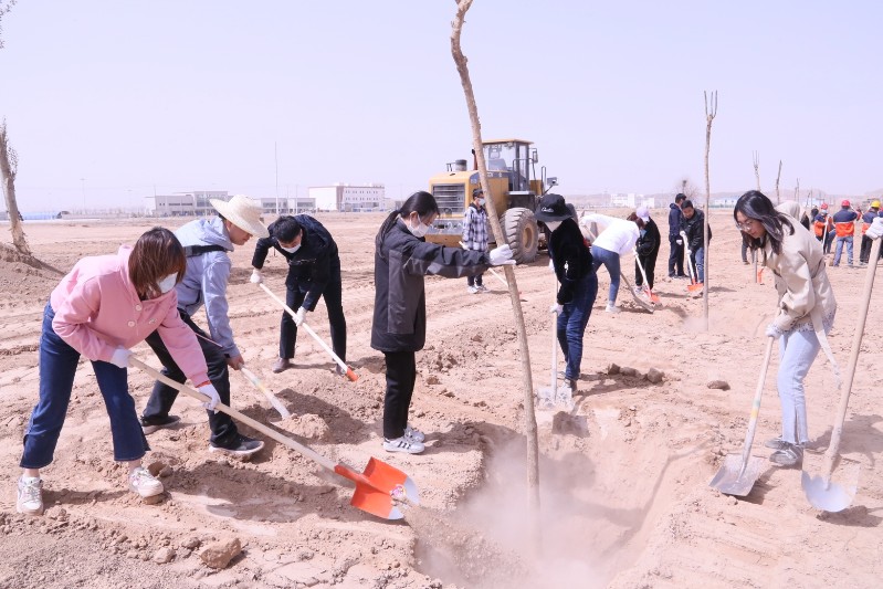 活動中,大家熱情高漲,分組協(xié)作,揮動鐵鍬,扶正樹苗,填土踩實,提桶澆水一氣呵成,忙而有序,植樹現(xiàn)場呈現(xiàn)出一副熱火朝天的勞動景象。為保證樹苗的成活率,專業(yè)人員現(xiàn)場對苗木栽植、澆水、養(yǎng)護等工作進行全程指導和監(jiān)督,確保植樹造林質(zhì)量。經(jīng)過大家的辛勤勞動和努力,一株株樹苗迎風矗立,給化工園區(qū)增添了一道亮麗的風景線。