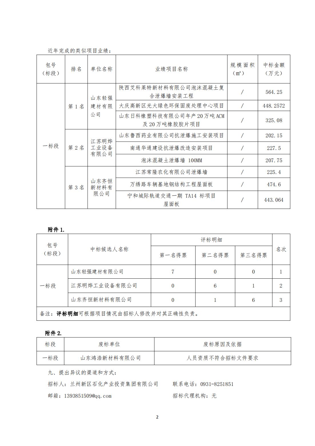 蘭州新區(qū)專精特新化工產(chǎn)業(yè)孵化基地項(xiàng)目(C 區(qū))一期、 三期屋面板墻面板框架采購中標(biāo)候選人公示