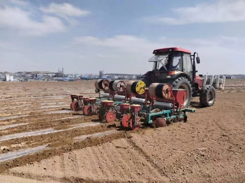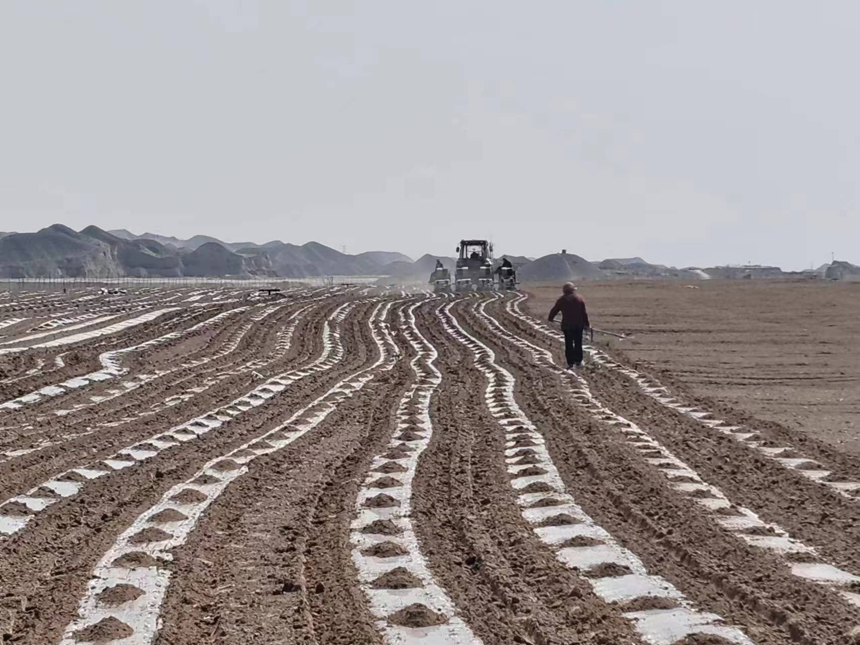 走進(jìn)蘭州新區(qū)經(jīng)三十四路以西、景中高速以東高標(biāo)準(zhǔn)農(nóng)田項(xiàng)目建設(shè)現(xiàn)場(chǎng),一臺(tái)臺(tái)玉米播種機(jī)正在徐徐前行,播種、鋪設(shè)地膜、滴灌帶等環(huán)節(jié)在現(xiàn)代農(nóng)機(jī)自帶北斗衛(wèi)星導(dǎo)航系統(tǒng)的精準(zhǔn)定位下完成,作業(yè)人員緊跟播種機(jī)查看開(kāi)溝、下種、鋪膜、覆土等情況。